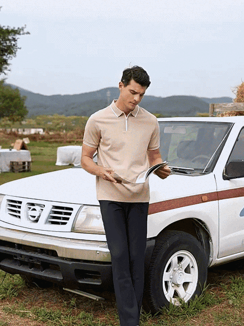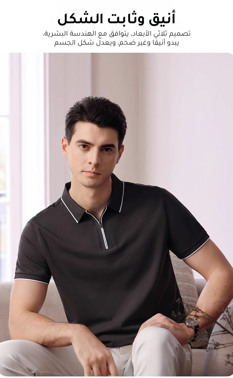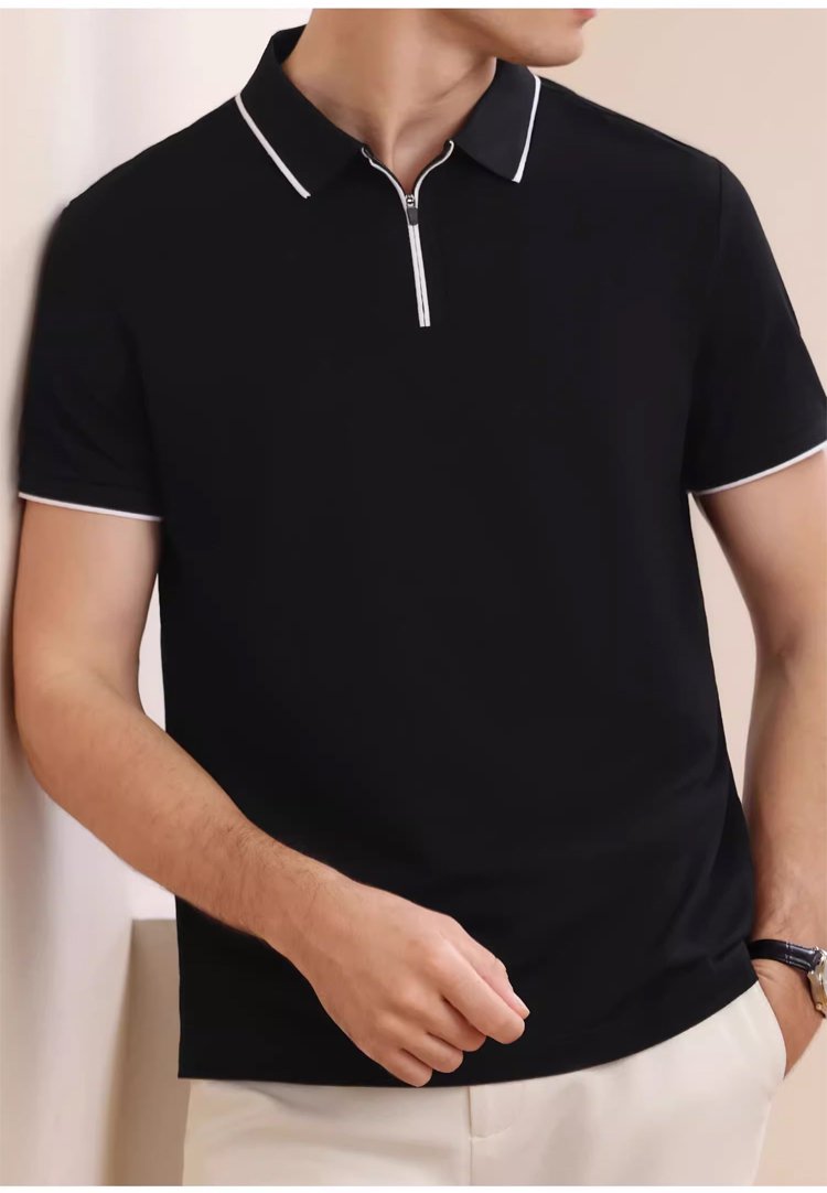 (قطن طويل التيلة فائق النعومة) قميص بولو صيفي جديد بنصف سحاب وياقة مطوية