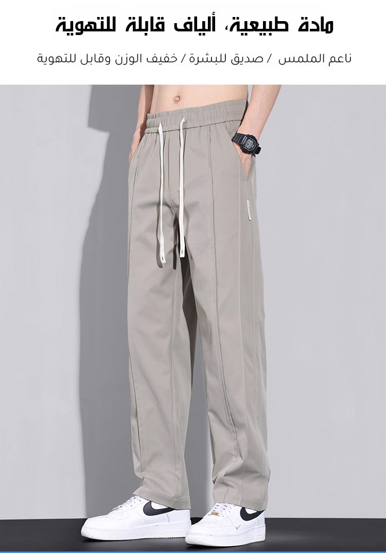 بنطال طويل رجالي صيفي جديد لعام 2025، خفيف ومريح بقصة مستقيمة ومقاوم للتجاعيد