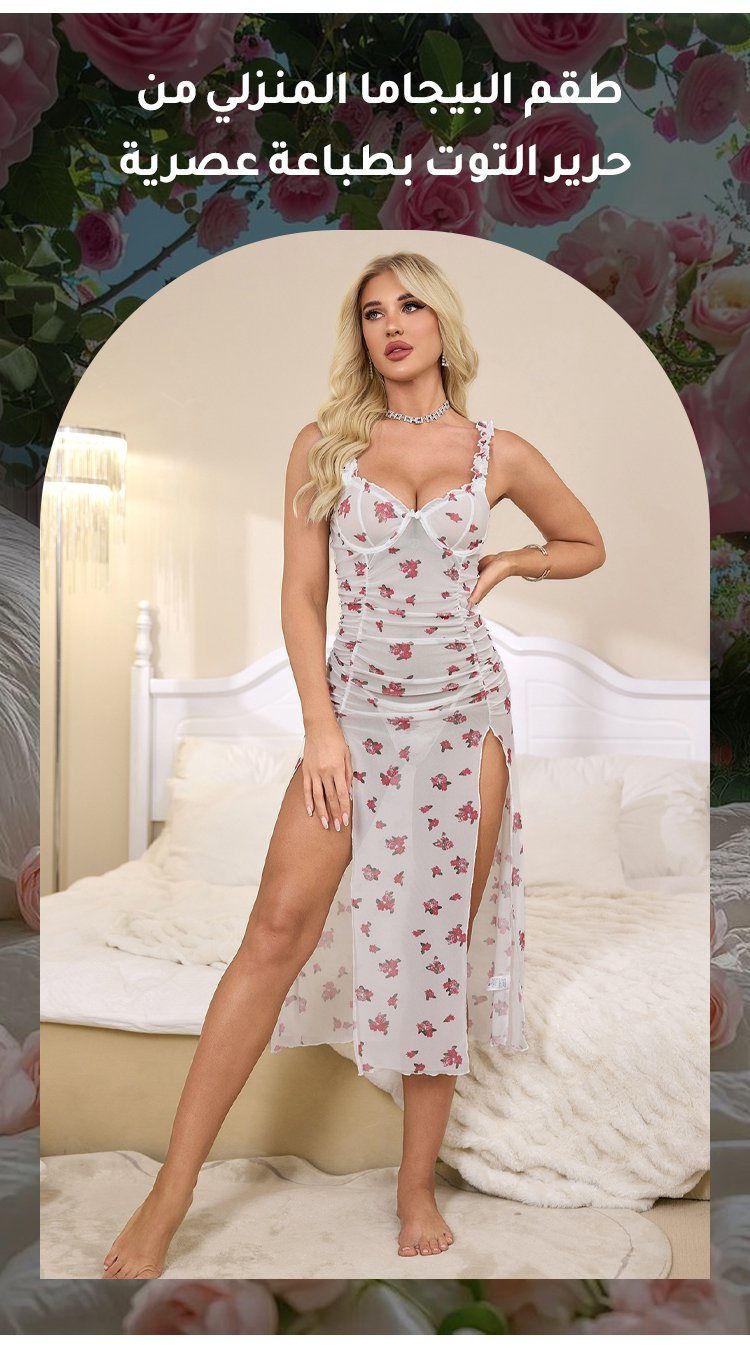 طقم البيجاما المنزلي من حرير التوت بطباعة عصرية من قطعتين