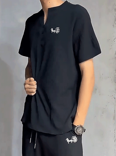 مجموعة تيشيرت رقيق جيد التهوية وبنطال كاجوال مزين بنقشة مطرزة بديعة