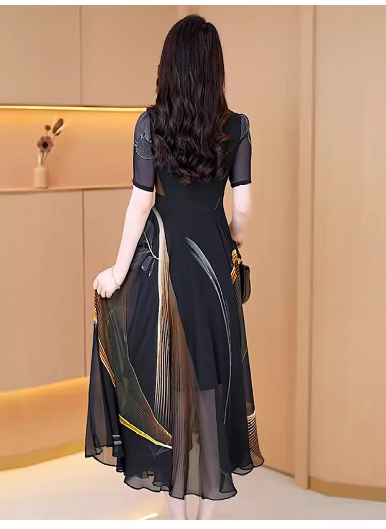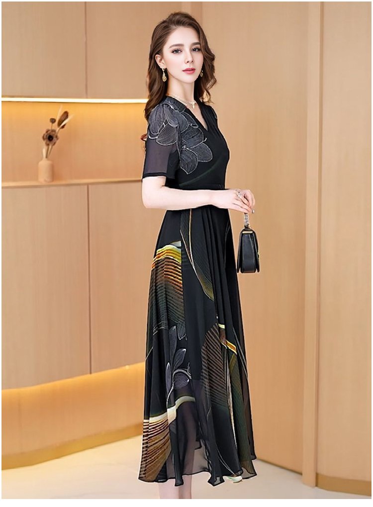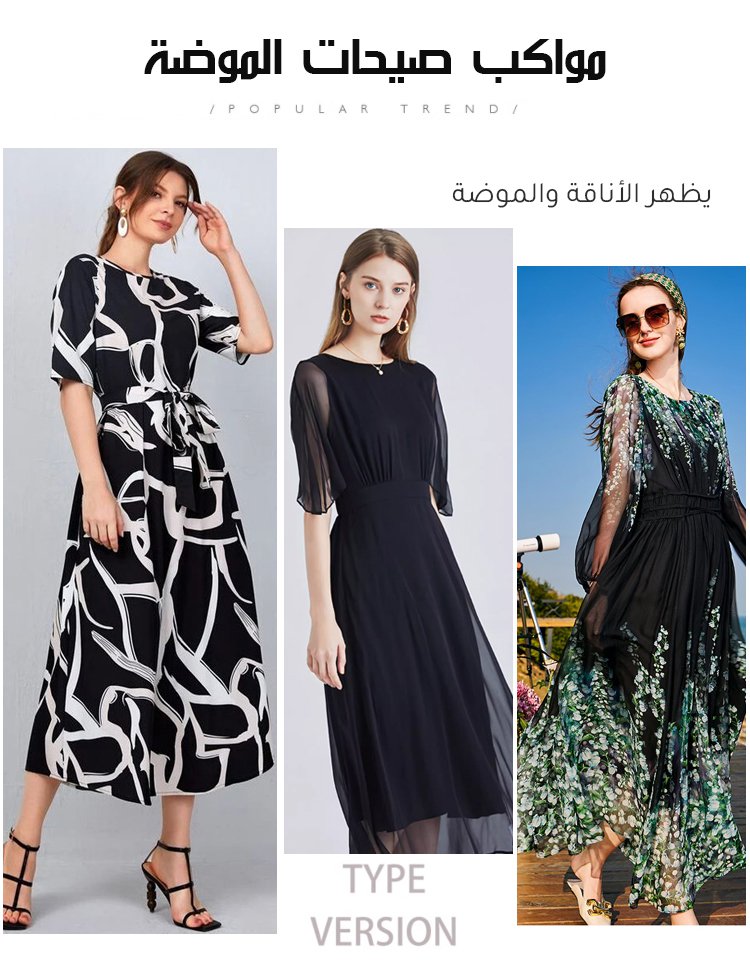 فستان طويل إيطالي فاخر مزين بالطباعة مع حافة كبيرة