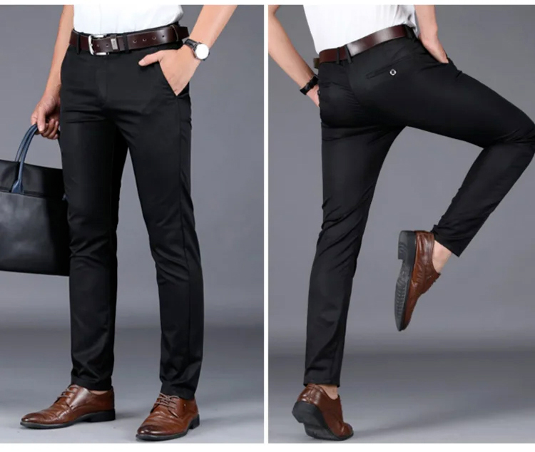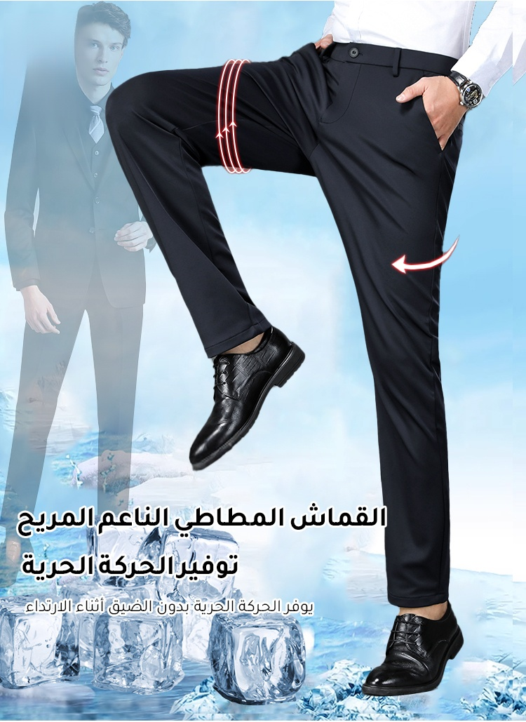بنطال رسمي من حرير صناعي مقاوم للتجعد للرجال