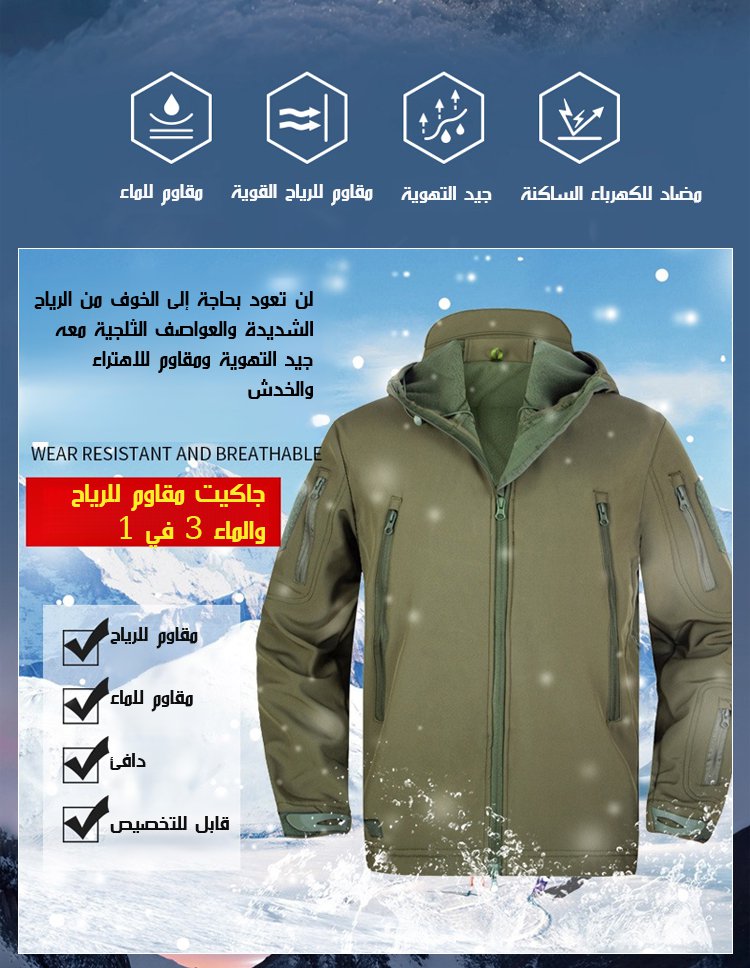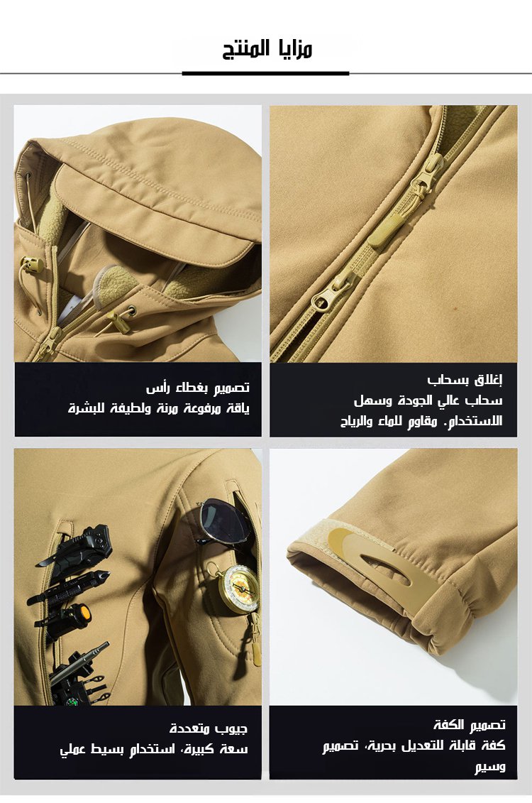 جاكيت كاجوال وسيم مقاوم للماء والرياح مع بطانة سميكة ودافئة (بطانة من قماش فليس)