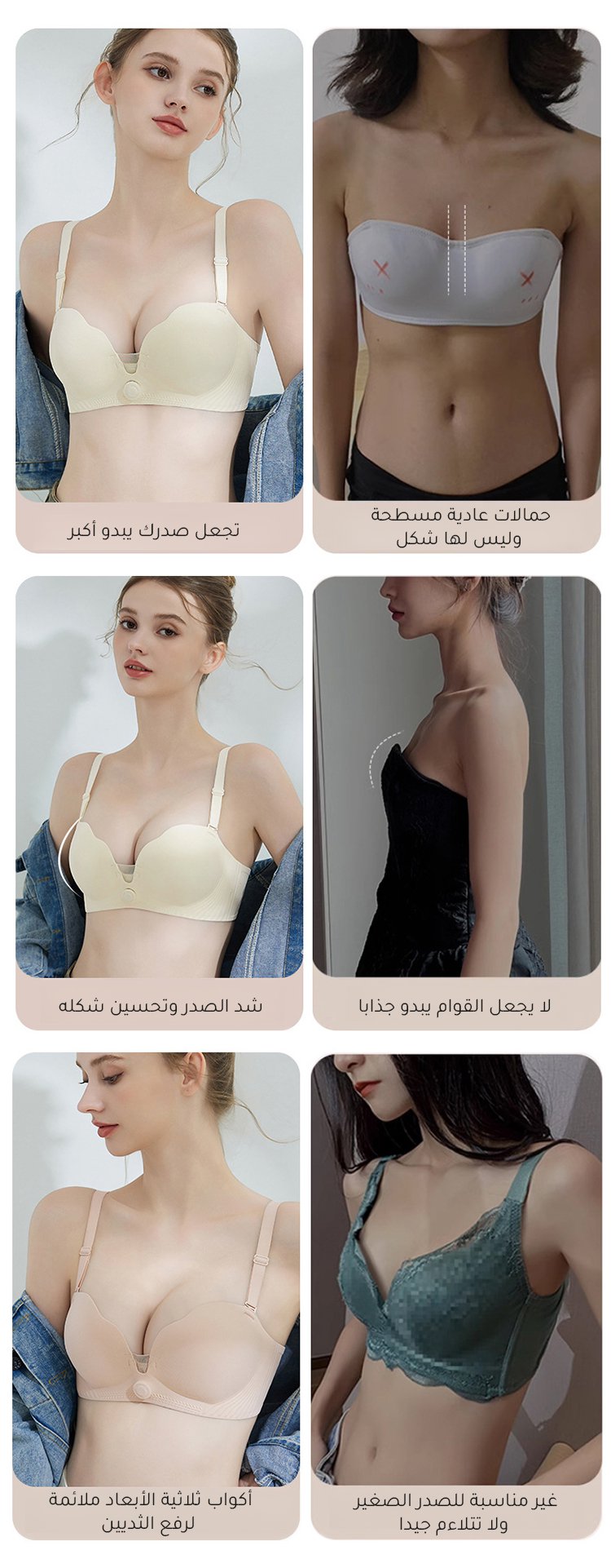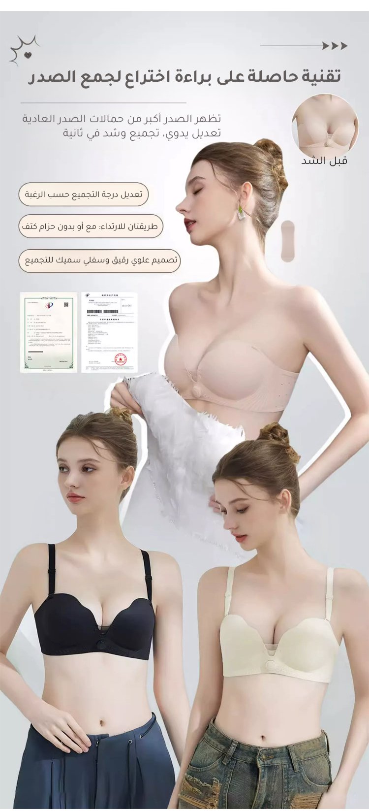 (تجميع الصدر في 1 ثانية) حمالة صدر قابلة للتعديل مزودة بزر دوار