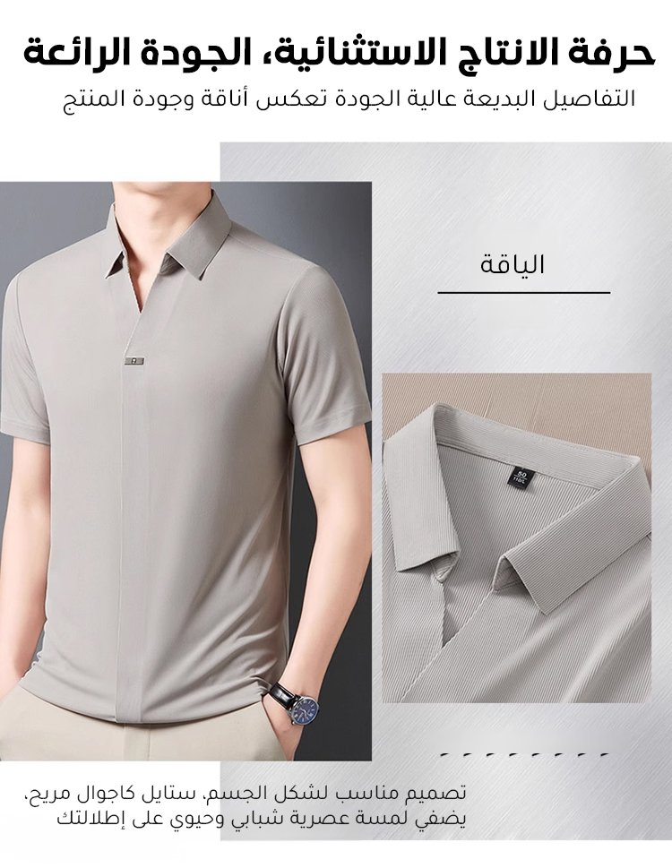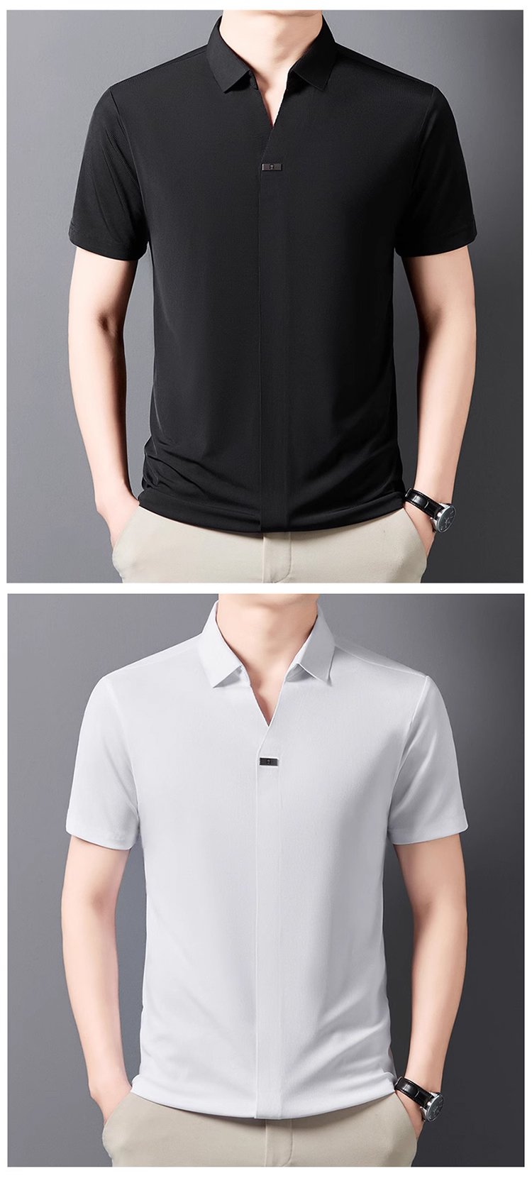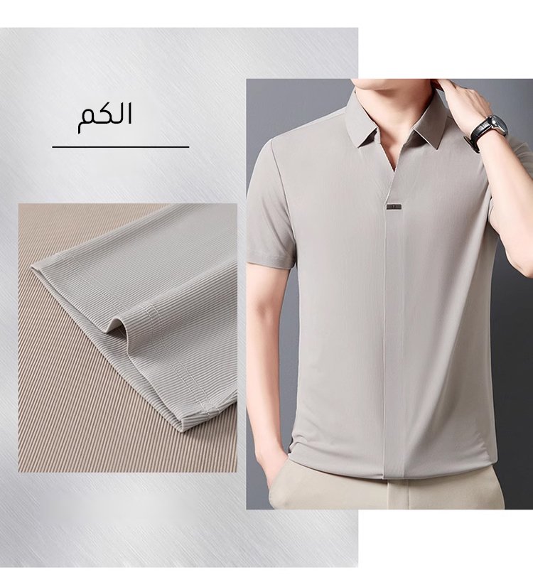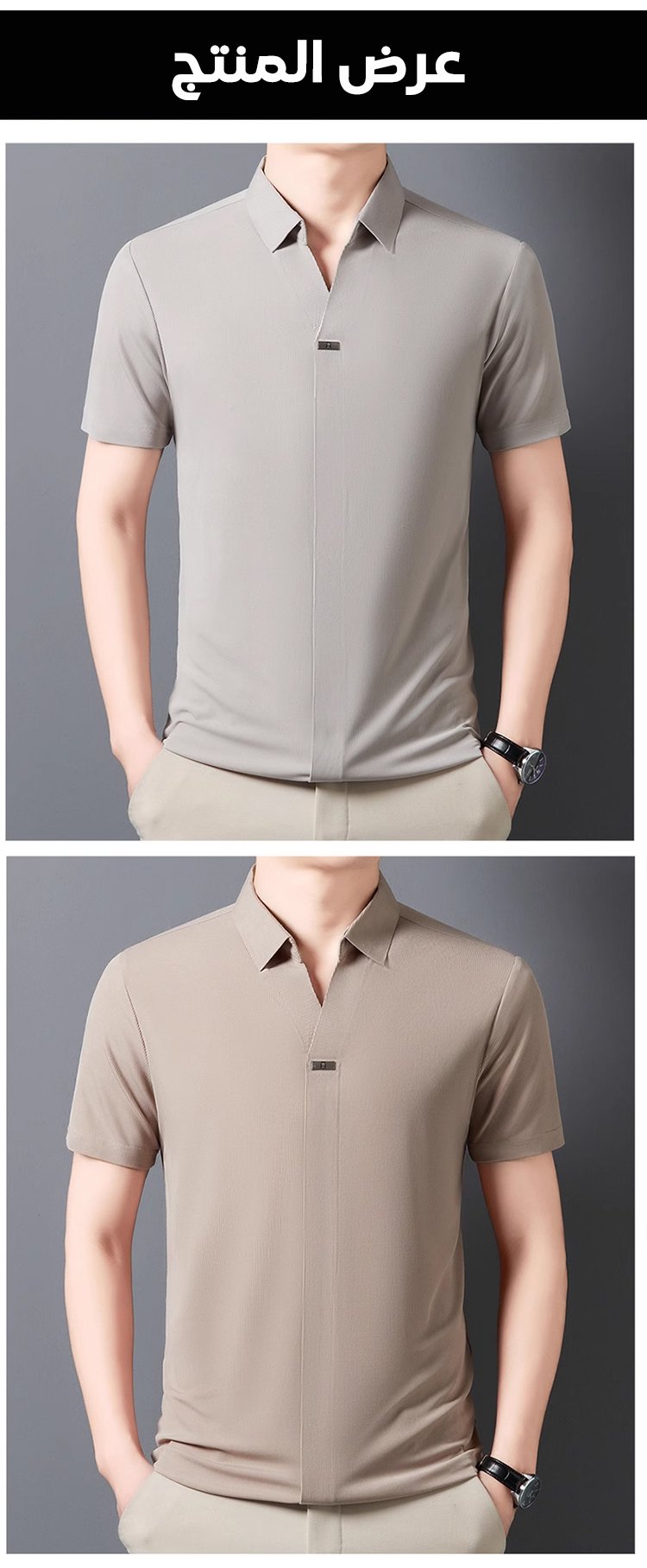 تي شيرت بولو ذو ياقة على شكل حرف V وأكمام قصيرة للرجال (تصميم بديع كلاسيكي راقي )