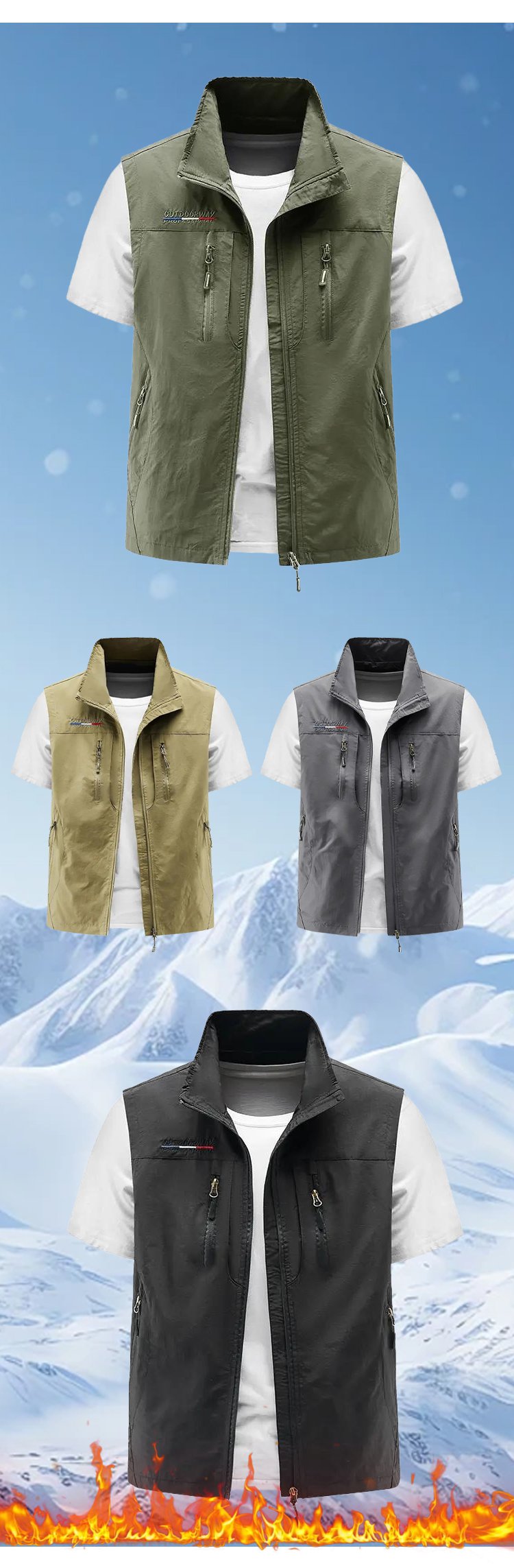 【ضرورية للطقس البارد】سترة رجالية بدون أكمام بجيوب متعددة للاستخدام اليومي والأنشطة الخارجية