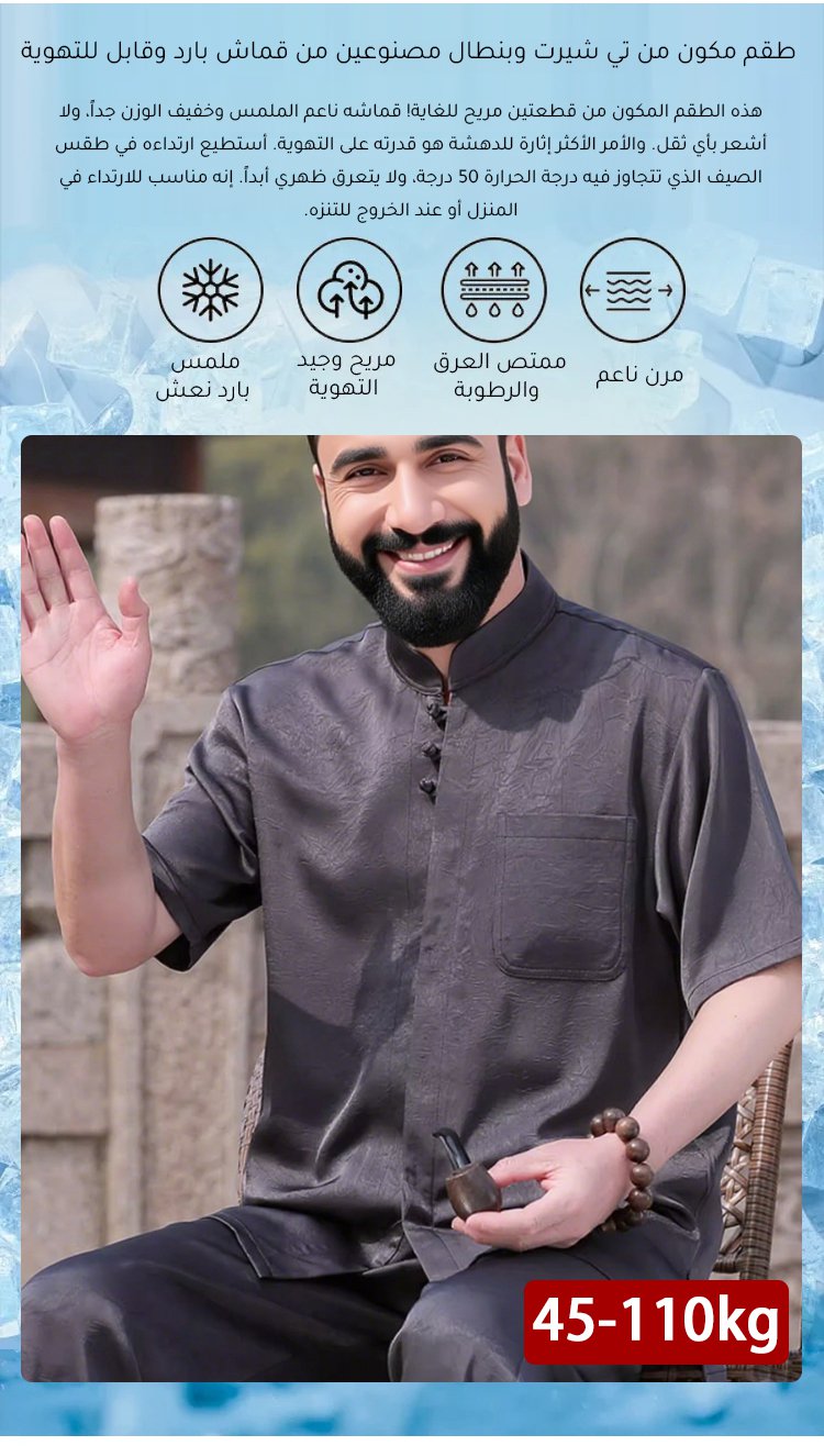 طقم مكون من تي شيرت وبنطال مصنوعين من قماش بارد وقابل للتهوية