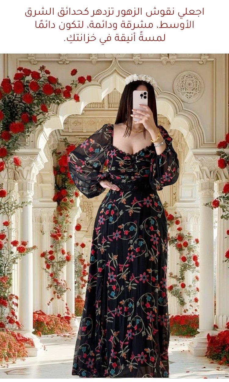 فستان شيفون بطبعة أزهار مع دانتيل على الحواف